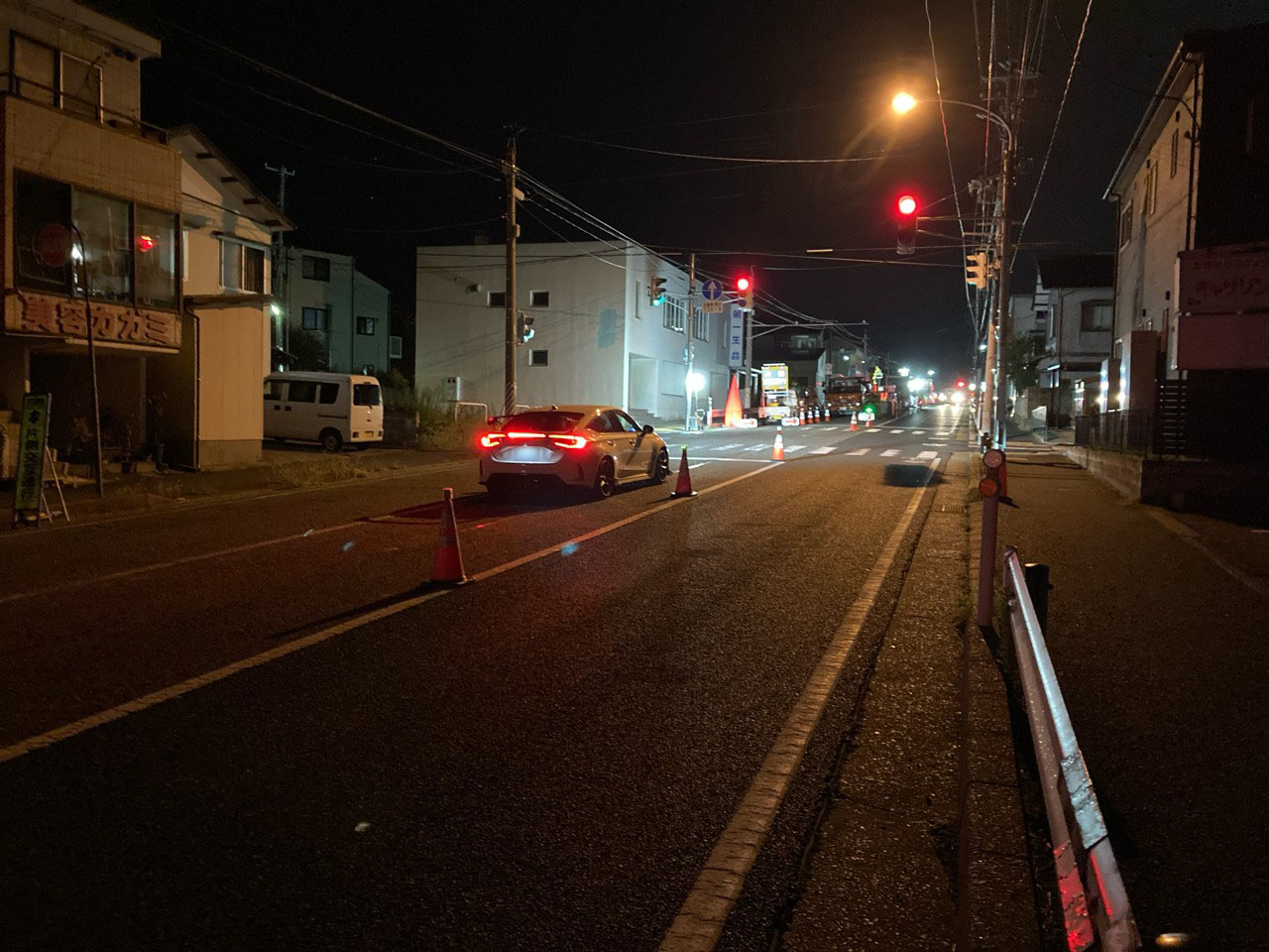 9月3日〜9日にかけて試掘調査を夜間作業にて行いました。水道管の埋設予定箇所に障害となるものがないかどうか調べました。掘削穴を埋めた後は仮舗装で復旧しています。 通行に少々ご不便をおかけするかもしれませんが、何卒ご協力の程お願いいたします。