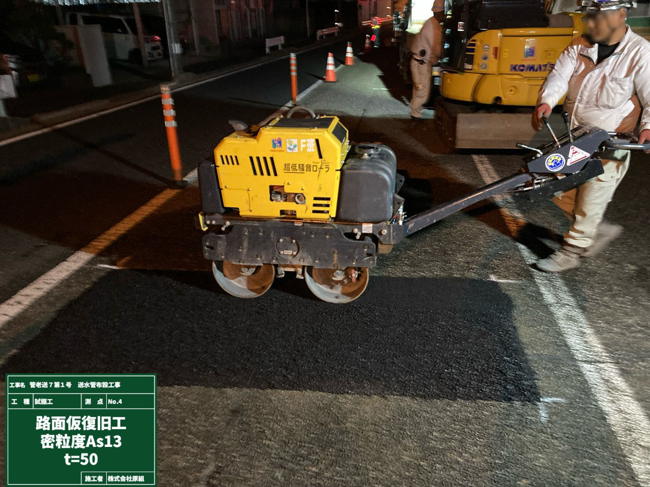 管の布設後は舗装を仮舗装で復旧しています。通行に少々ご不便をおかけするかもしれませんが、何卒ご協力をお願いいたします。NEW